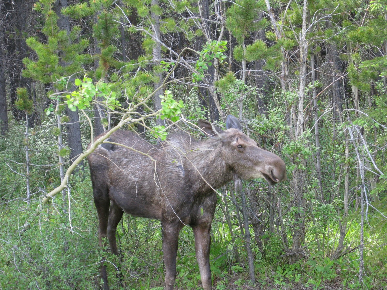 Left Lethbridge at 9:30 to drive along some of our favorite roads. Went west to pick up Hwy 22 and head north along the foothills (hills and mountains on the left, prairies on the right) to Longview (home of famous 'beef jerky' and home of singer / rancher Ian Tyson) where we stopped for coffee/lunch. Then west and north along Hwy 40 over the Highwood Pass (Canada's highest paved road at 7,300 ft -- road is open June 15 to Sept 15 >> closed due to likely snow the rest of the season). A great trip, and we found ourselves above the snow line. Met mountain sheep and a 'moose' along the way -- just munching on a tree by the road. A little over 300 km today. Total actual trip (excluding the one 'day trip) turns out to be 4,100 km. Arrive in Canmore by 4:00; in time for some furniture to be delivered at 5:00. We're 'home'!!!! Oh.........and the Lilacs are in full bloom in Canmore (unlike Ontario where they died off a couple of months ago --- maybe we've gone back in time out here !!???!!